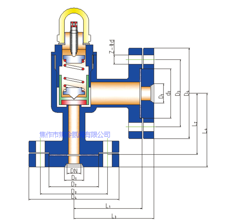 1.用途:本閥門為封閉式全啟安全閥,適用于工作溫度-50℃至+150℃有腐蝕性及環(huán)境不能外泄的特殊介質(zhì)的制冷設(shè)備及相關(guān)管路上,做為超壓保護(hù)裝置,介質(zhì)包括:氨、氟、丙烷和C02等;