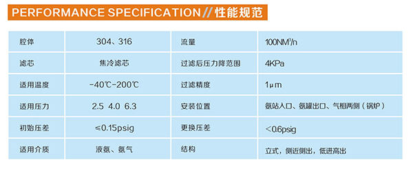 ●***技術(shù),符合氨區(qū)安全標(biāo)準(zhǔn),可在承工作狀態(tài)進(jìn)行排污及更換濾芯。